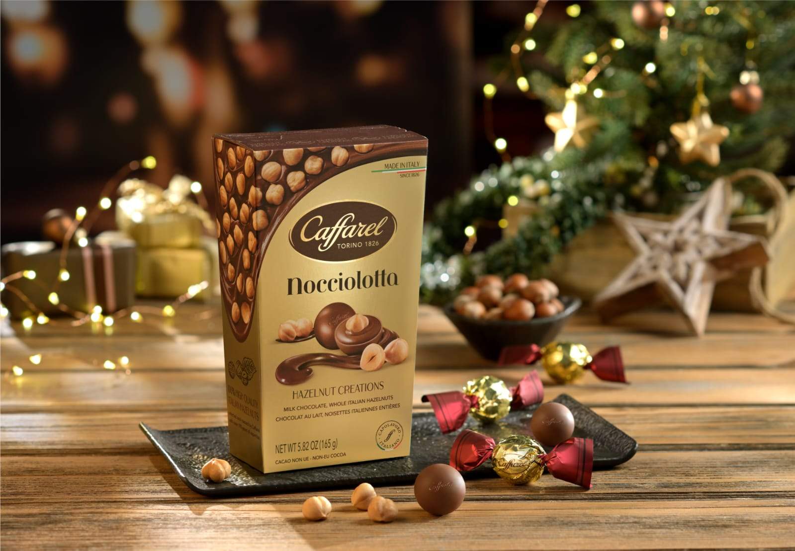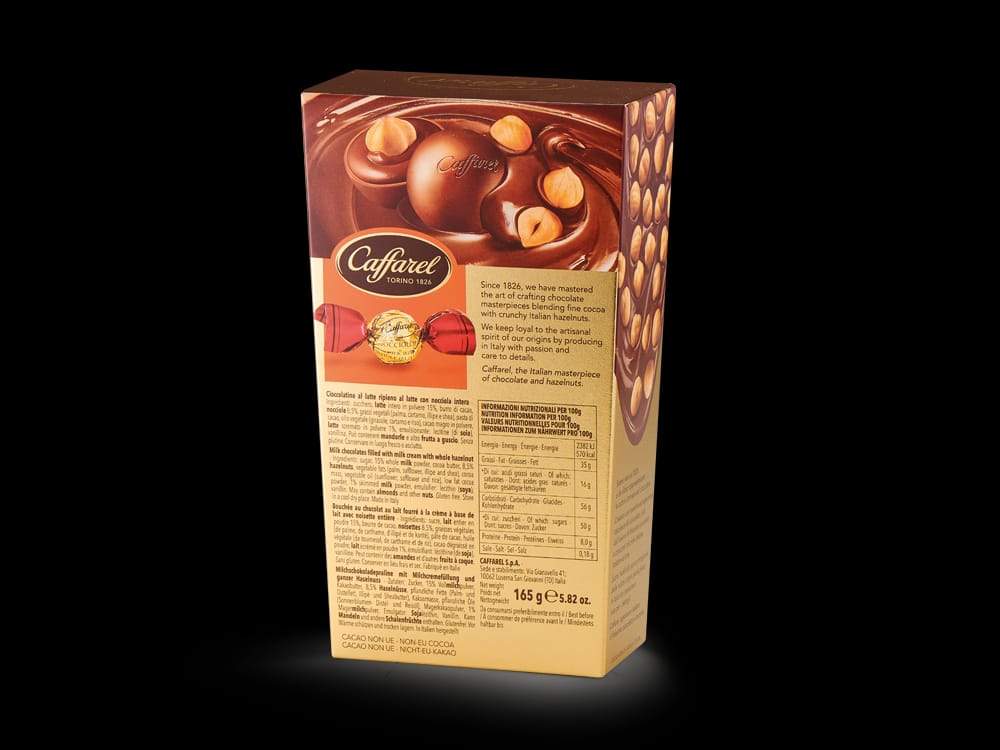 Die Classic Nocciolotta sind hochwertige Nougat-Pralinen aus der norditalienischen Region Piemont. Der Piemont ist unter anderem für Haselnüsse sehr bekannt. In diesem Fall wurden sie von Caffarel für feinen Nougat in Würfelform verwendet. Die Pralinen bestehen zu über 40 Prozent allein aus den ganzen Nüssen. Außerdem sind Zucker, Kakaomasse, Kakaobutter, Milchpulver, Mandeln und andere Baumnüsse enthalten. Bei der Sorte der Schokolade handelt es sich hier um exquisite Gianduja Schokolade: Einen dunklen Nougat, der in Turin seinen Ursprung hat. Auch das Unternehmen Caffarel wurde 1826 in Turin gegründet. Seither ist die Firma Hersteller von hochqualitativen Schokoladenprodukten, meist in Kombination mit Haselnüssen aus der Region. Die Rezepte für die Pralinen entwickelt Caffarel selbst, unter Verwendung erlesener Zutaten. So bezieht das Unternehmen den Kakao ausschließlich aus Ecuador und Ghana.