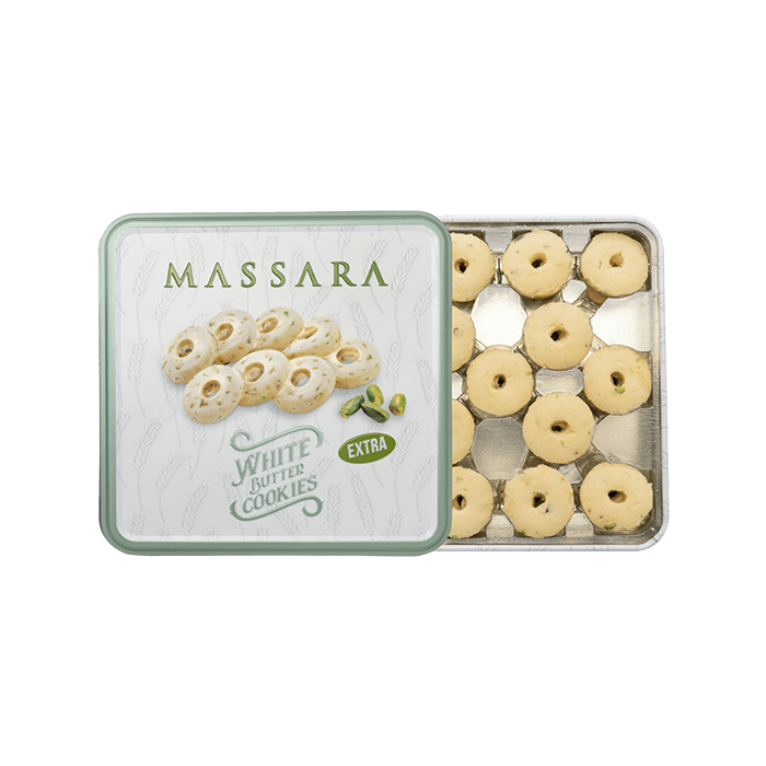 - Weisse Butter Kekse Extra ist eine einzigartige Version der himmlischen weissen Butter Kekse mit Pistazien, die in ihren würzigen Teig eingearbeitet sind.